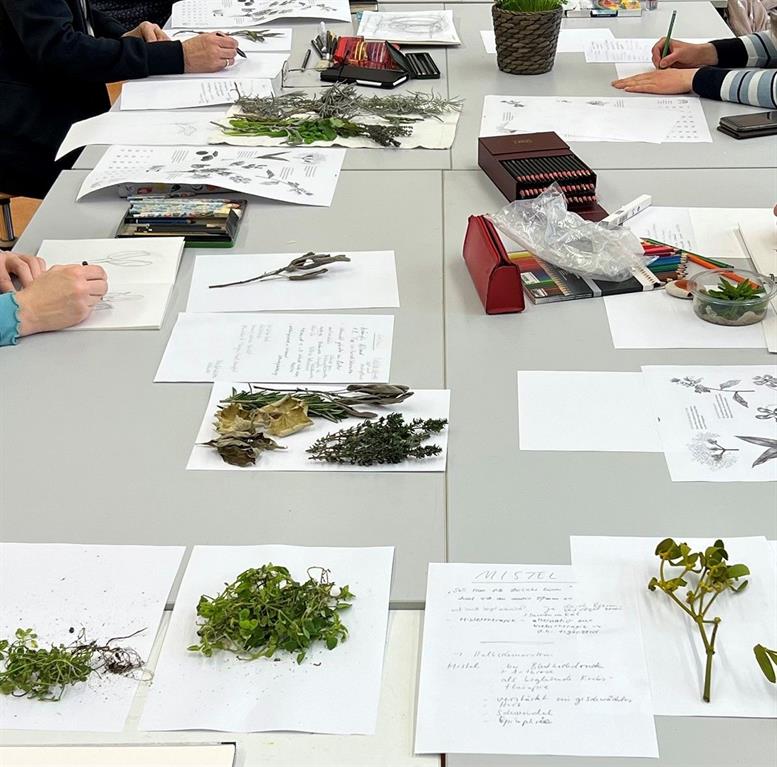 Botanisches Zeichnen: Getrocknete Blumen, Blätter und Samen